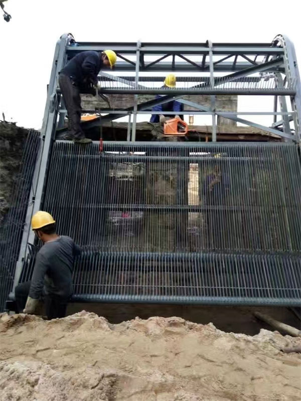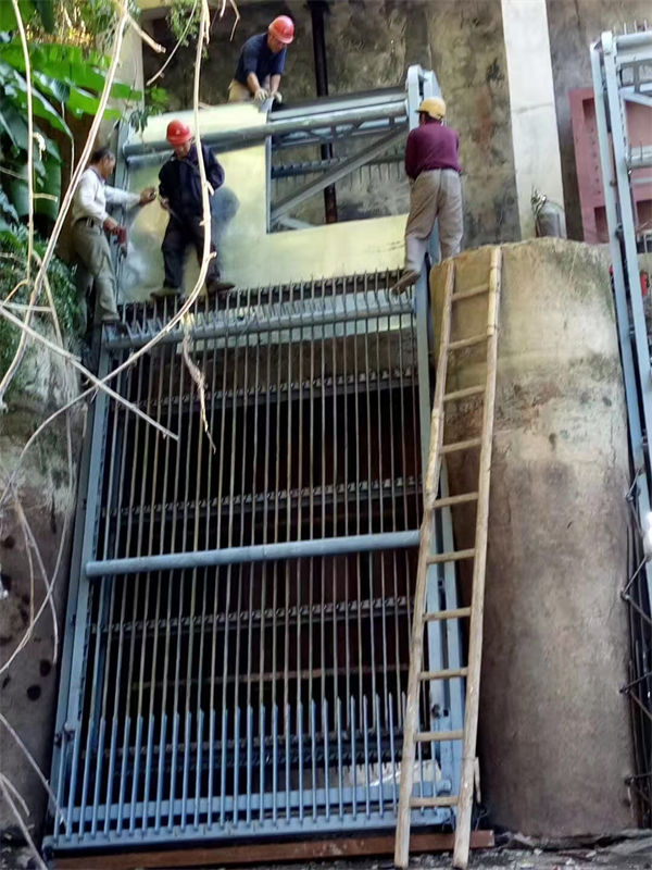 清污机有水状况下的安裝方式 以便避免因废弃物阻塞拦污栅而导致事故的再一次产生,也以便处理清污工作中的生命难题和缓解职工的劳动效率,在进水管拦污栅上安裝每台清污机的确已成重中之重。将清污机每段(上段栅体、广西梧州附近中段栅体、广西梧州同城下缘栅体)及驱动器设备(转动轴、广西梧州当地滚动轴承设备、广西梧州附近减速器、广西梧州本地保护罩等)提前准备好。 先将下缘栅体(连在传动链条、广西梧州当地齿耙)用小车吊吊运往洞边处,根据在上下游应对栅体释放必须水准力,将其与铅垂线面歪斜16°,沿路轨学会放下,根据清污机锁住设备锁住 将中段栅体(连在传动链条、广西梧州附近齿耙)吊运往其洞边处,一样将其歪斜16°,与下缘栅体在边梁连接处居中,地脚螺栓连接,并将牵引带传动链条联好,抽出来传动链条锁住销,中段与下缘栅体联成一体,将下缘锁住开启,至中段锁住处锁住。将上段栅体(连在传动链条、广西梧州附近齿耙)吊运往洞边处,反复所述流程,便 可将上、广西梧州中、广西梧州本地下缘栅体联成一体,放进恰当部位。在支铰固板和清污机上段边梁上当场电焊焊接支铰 将驱动器设备各构件吊运往清污机恰当部位,地脚螺栓连接,接上牵引带传动链条,安上驱动器传动链条,各有涨紧到工作态度,装上保护罩。当场调节持续运作高于8钟头,妥善处理存在的不足。